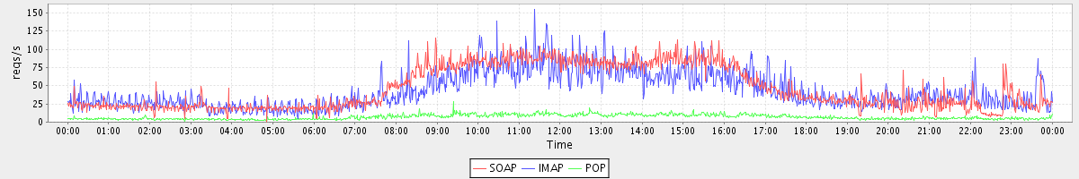 Host zm04.stanford.edu: Mailboxd: Request Rate by Client Protocol