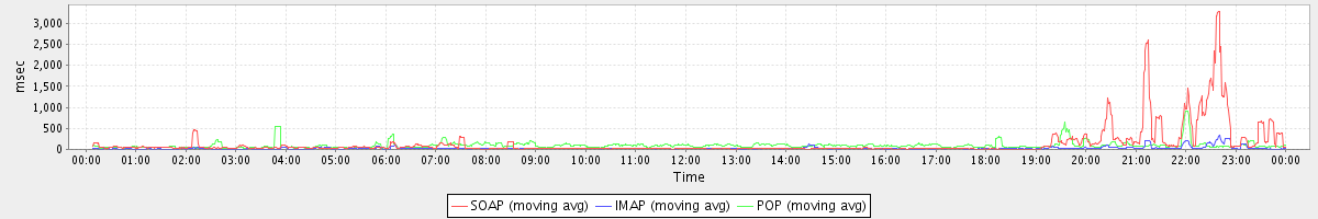 Host zm04.stanford.edu: Mailboxd: Response Time by Client Protocol