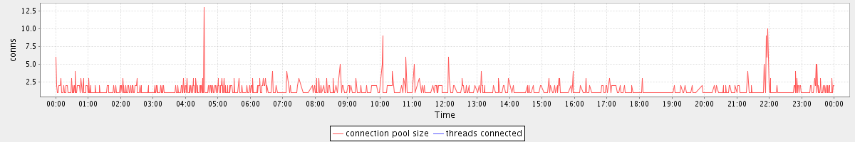 avg(connection pool size) = 0.94 avg(threads connected) = 0.00