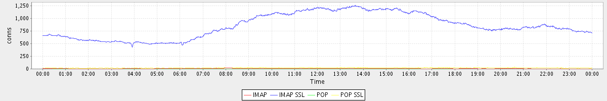 avg(IMAP) = 6.67 avg(IMAP SSL) = 853.22 avg(POP) = 0.12 avg(POP SSL) = 19.21
