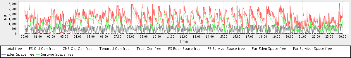 avg(total free) = 1637.33 avg(PS Old Gen free) = 0.00 avg(CMS Old Gen free) = 1110.66 avg(Tenured Gen free) = 0.00 avg(Train Gen free) = 0.00 avg(PS Eden Space free) = 0.00 avg(PS Survivor Space free) = 0.00 avg(Par Eden Space free) = 491.28 avg(Par Survivor Space free) = 35.39 avg(Eden Space free) = 0.00 avg(Survivor Space free) = 0.00