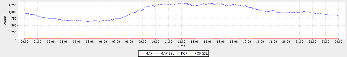 avg(IMAP) = 11.39 avg(IMAP SSL) = 1000.30 avg(POP) = 0.00 avg(POP SSL) = 66.86