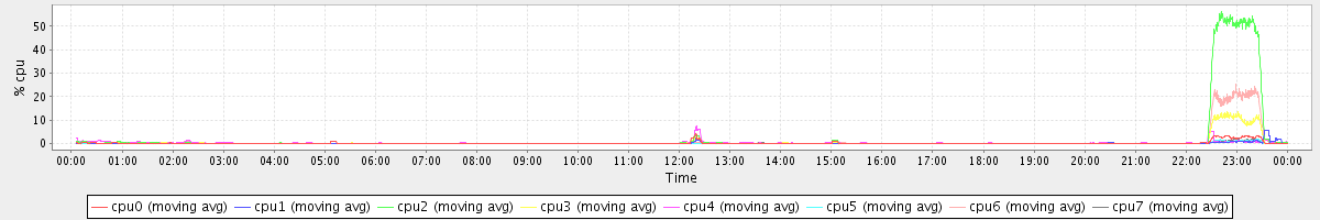 avg(cpu0) = 0.87 avg(cpu1) = 0.71 avg(cpu2) = 0.66 avg(cpu3) = 0.64 avg(cpu4) = 0.43 avg(cpu5) = 0.42 avg(cpu6) = 0.35 avg(cpu7) = 0.31