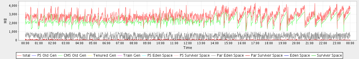 avg(total) = 2818.57 avg(PS Old Gen) = 0.00 avg(CMS Old Gen) = 2299.06 avg(Tenured Gen) = 0.00 avg(Train Gen) = 0.00 avg(PS Eden Space) = 0.00 avg(PS Survivor Space) = 0.00 avg(Par Eden Space) = 483.31 avg(Par Survivor Space) = 36.19 avg(Eden Space) = 0.00 avg(Survivor Space) = 0.00