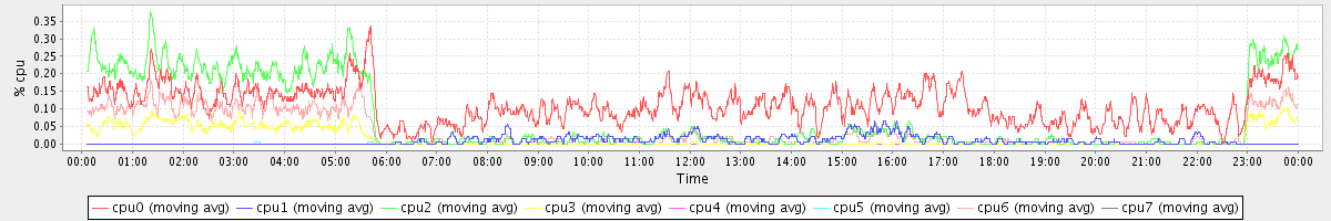 avg(cpu0) = 1.63 avg(cpu1) = 0.16 avg(cpu2) = 0.25 avg(cpu3) = 0.15 avg(cpu4) = 0.10 avg(cpu5) = 0.13 avg(cpu6) = 0.17 avg(cpu7) = 0.12