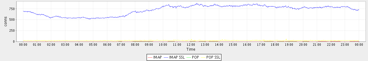 avg(IMAP) = 2.94 avg(IMAP SSL) = 720.25 avg(POP) = 0.05 avg(POP SSL) = 24.52
