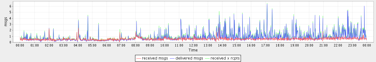 avg(received msgs) = 0.55 avg(delivered msgs) = 0.85 avg(received x rcpts) = 0.98