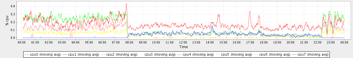 avg(cpu0) = 2.01 avg(cpu1) = 0.31 avg(cpu2) = 0.38 avg(cpu3) = 0.27 avg(cpu4) = 0.24 avg(cpu5) = 0.27 avg(cpu6) = 0.32 avg(cpu7) = 0.25