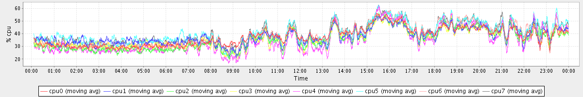 avg(cpu0) = 37.78 avg(cpu1) = 37.93 avg(cpu2) = 35.60 avg(cpu3) = 36.37 avg(cpu4) = 34.80 avg(cpu5) = 40.64 avg(cpu6) = 38.89 avg(cpu7) = 40.02