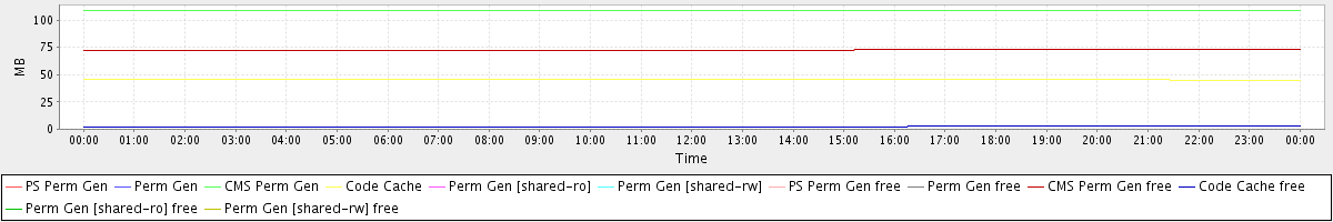 avg(PS Perm Gen) = 0.00 avg(Perm Gen) = 0.00 avg(CMS Perm Gen) = 108.55 avg(Code Cache) = 45.55 avg(Perm Gen [shared-ro]) = 0.00 avg(Perm Gen [shared-rw]) = 0.00 avg(PS Perm Gen free) = 0.00 avg(Perm Gen free) = 0.00 avg(CMS Perm Gen free) = 72.57 avg(Code Cache free) = 2.38 avg(Perm Gen [shared-ro] free) = 0.00 avg(Perm Gen [shared-rw] free) = 0.00