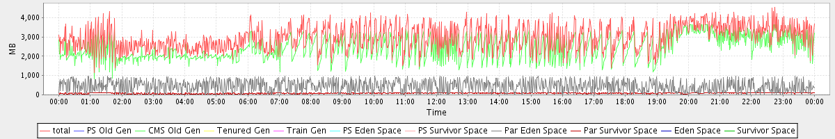 avg(total) = 2972.00 avg(PS Old Gen) = 0.00 avg(CMS Old Gen) = 2429.79 avg(Tenured Gen) = 0.00 avg(Train Gen) = 0.00 avg(PS Eden Space) = 0.00 avg(PS Survivor Space) = 0.00 avg(Par Eden Space) = 463.17 avg(Par Survivor Space) = 79.04 avg(Eden Space) = 0.00 avg(Survivor Space) = 0.00