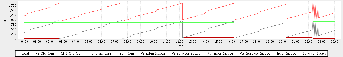 avg(total) = 1396.43 avg(PS Old Gen) = 0.00 avg(CMS Old Gen) = 874.30 avg(Tenured Gen) = 0.00 avg(Train Gen) = 0.00 avg(PS Eden Space) = 0.00 avg(PS Survivor Space) = 0.00 avg(Par Eden Space) = 469.26 avg(Par Survivor Space) = 52.87 avg(Eden Space) = 0.00 avg(Survivor Space) = 0.00