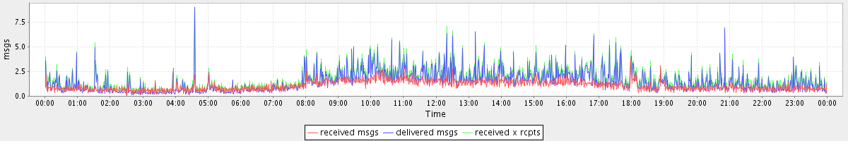 avg(received msgs) = 1.06 avg(delivered msgs) = 1.43 avg(received x rcpts) = 1.70
