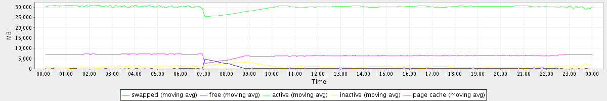 avg(swapped) = 0.23 avg(free) = 372.47 avg(active) = 29954.14 avg(inactive) = 1161.34 avg(page cache) = 6533.37