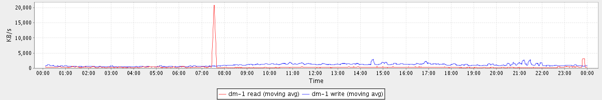 avg(dm-1 read) = 410.13 avg(dm-1 write) = 1050.81