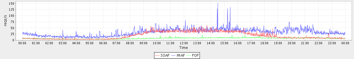 Host zm03.stanford.edu: Mailboxd: Request Rate by Client Protocol