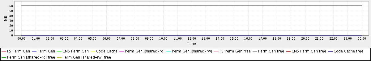 avg(PS Perm Gen) = 0.00 avg(Perm Gen) = 0.00 avg(CMS Perm Gen) = 66.57 avg(Code Cache) = 10.44 avg(Perm Gen [shared-ro]) = 0.00 avg(Perm Gen [shared-rw]) = 0.00 avg(PS Perm Gen free) = 0.00 avg(Perm Gen free) = 0.00 avg(CMS Perm Gen free) = 61.43 avg(Code Cache free) = 0.15 avg(Perm Gen [shared-ro] free) = 0.00 avg(Perm Gen [shared-rw] free) = 0.00