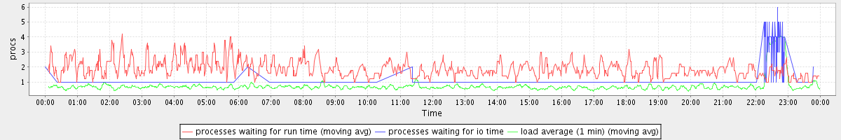 avg(processes waiting for run time) = 0.74 avg(processes waiting for io time) = 0.11 avg(load average (1 min)) = 0.75