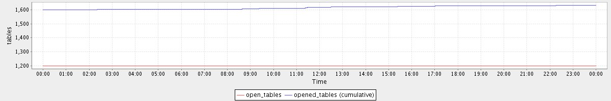 avg(open_tables) = 1199.91 avg(opened_tables (cumulative)) = 1616.02