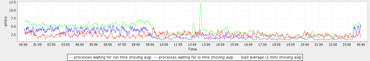 avg(processes waiting for run time) = 1.75 avg(processes waiting for io time) = 1.93 avg(load average (1 min)) = 3.92