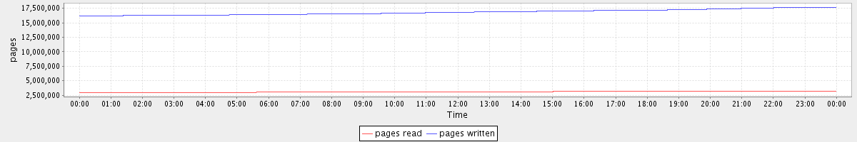 avg(pages read) = 3075071.86 avg(pages written) = 16828732.24