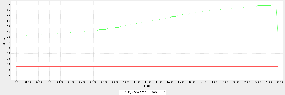 avg(/usr/vice/cache) = 13.00 avg(/opt) = 4.00 avg(/) = 54.69