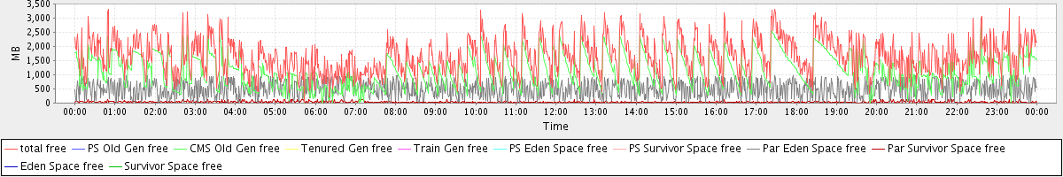 avg(total free) = 1657.25 avg(PS Old Gen free) = 0.00 avg(CMS Old Gen free) = 1127.81 avg(Tenured Gen free) = 0.00 avg(Train Gen free) = 0.00 avg(PS Eden Space free) = 0.00 avg(PS Survivor Space free) = 0.00 avg(Par Eden Space free) = 495.81 avg(Par Survivor Space free) = 33.63 avg(Eden Space free) = 0.00 avg(Survivor Space free) = 0.00