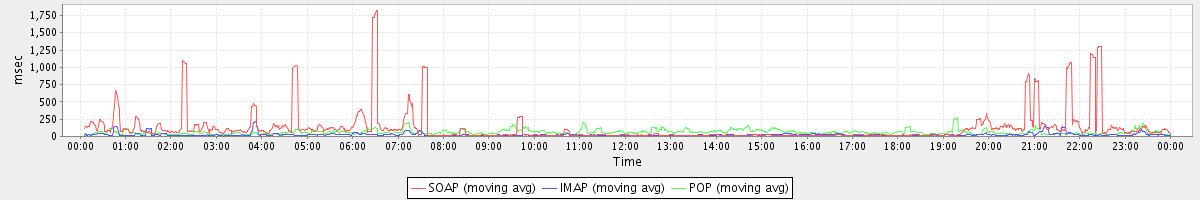 avg(SOAP) = 120.74 avg(IMAP) = 25.06 avg(POP) = 62.14