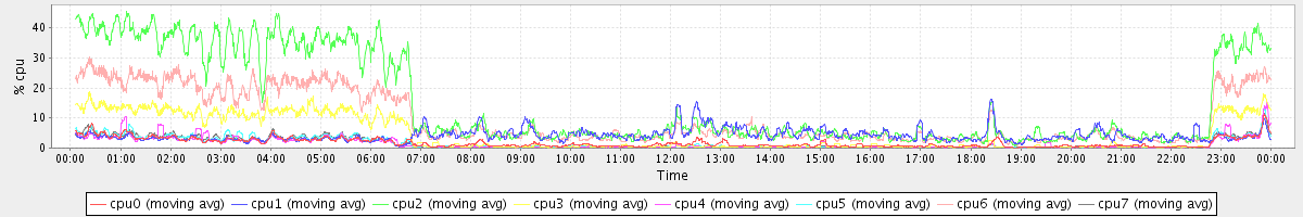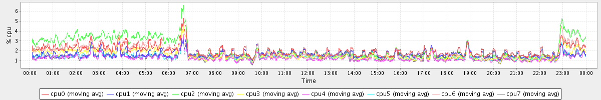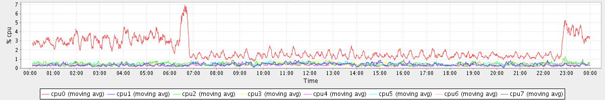 avg(cpu0) = 2.04 avg(cpu1) = 0.40 avg(cpu2) = 0.47 avg(cpu3) = 0.40 avg(cpu4) = 0.31 avg(cpu5) = 0.40 avg(cpu6) = 0.42 avg(cpu7) = 0.40