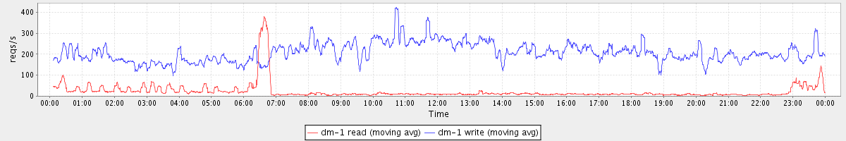 avg(dm-1 read) = 22.27 avg(dm-1 write) = 208.24