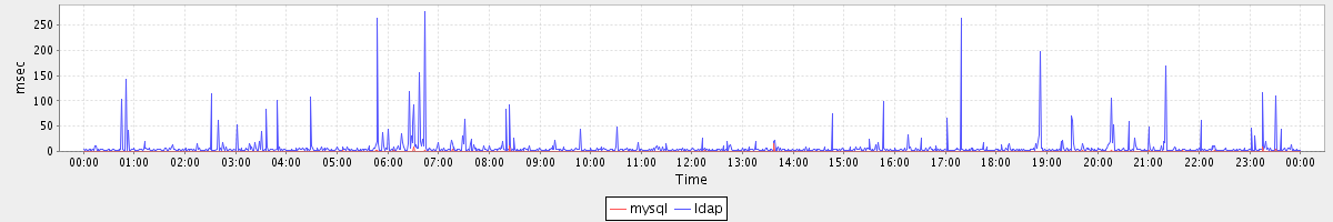 avg(mysql) = 0.21 avg(ldap) = 6.99