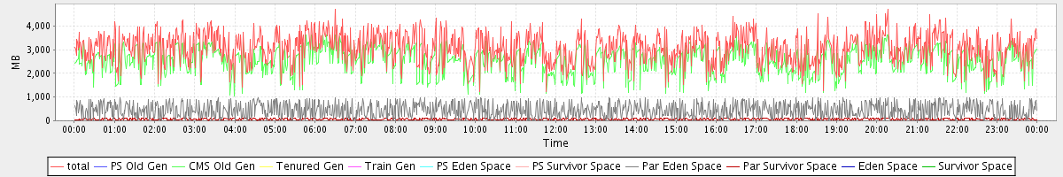 avg(total) = 3054.10 avg(PS Old Gen) = 0.00 avg(CMS Old Gen) = 2539.83 avg(Tenured Gen) = 0.00 avg(Train Gen) = 0.00 avg(PS Eden Space) = 0.00 avg(PS Survivor Space) = 0.00 avg(Par Eden Space) = 453.48 avg(Par Survivor Space) = 60.78 avg(Eden Space) = 0.00 avg(Survivor Space) = 0.00