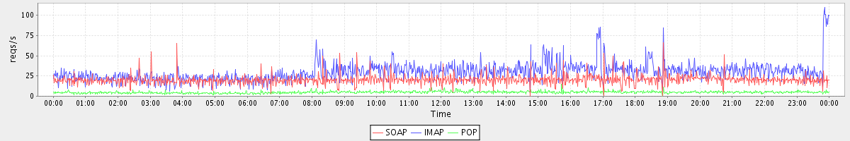 Host zm04.stanford.edu: Mailboxd: Request Rate by Client Protocol