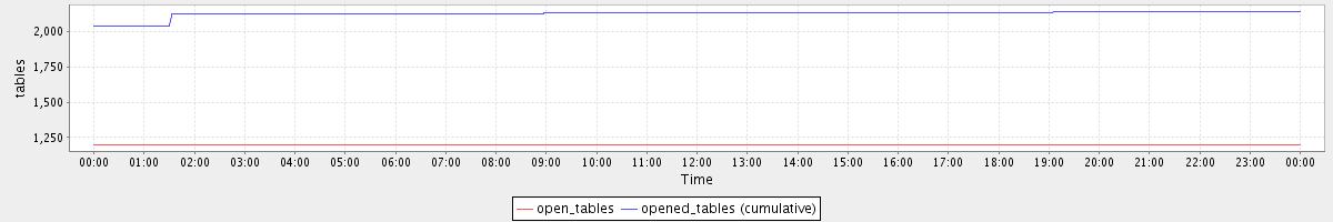 avg(open_tables) = 1199.81 avg(opened_tables (cumulative)) = 2128.65