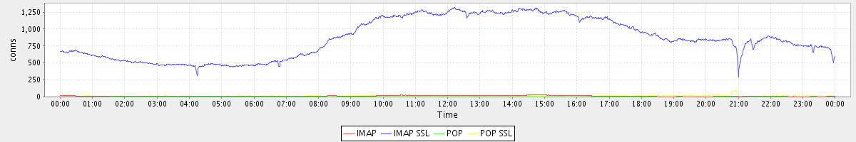 avg(IMAP) = 11.93 avg(IMAP SSL) = 864.19 avg(POP) = 0.06 avg(POP SSL) = 16.05