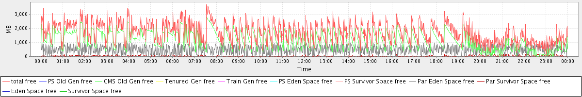 avg(total free) = 1723.56 avg(PS Old Gen free) = 0.00 avg(CMS Old Gen free) = 1190.52 avg(Tenured Gen free) = 0.00 avg(Train Gen free) = 0.00 avg(PS Eden Space free) = 0.00 avg(PS Survivor Space free) = 0.00 avg(Par Eden Space free) = 501.15 avg(Par Survivor Space free) = 31.89 avg(Eden Space free) = 0.00 avg(Survivor Space free) = 0.00