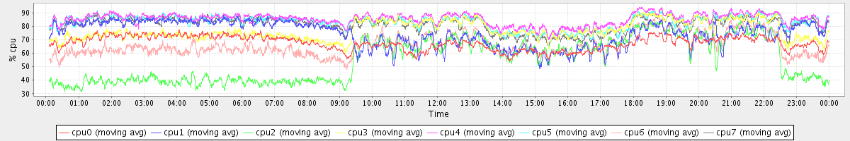 avg(cpu0) = 67.72 avg(cpu1) = 74.56 avg(cpu2) = 55.24 avg(cpu3) = 77.16 avg(cpu4) = 85.51 avg(cpu5) = 83.45 avg(cpu6) = 66.19 avg(cpu7) = 81.67