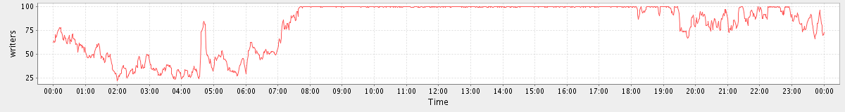avg(user) = 23.88 avg(sys) = 1.96 avg(idle) = 66.03 avg(iowait) = 7.29 avg(nice) = 0.00 avg(irq) = 0.08 avg(softirq) = 0.76