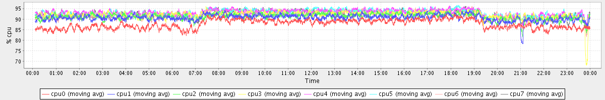 avg(cpu0) = 87.82 avg(cpu1) = 90.83 avg(cpu2) = 91.36 avg(cpu3) = 92.07 avg(cpu4) = 93.16 avg(cpu5) = 93.12 avg(cpu6) = 92.29 avg(cpu7) = 92.56