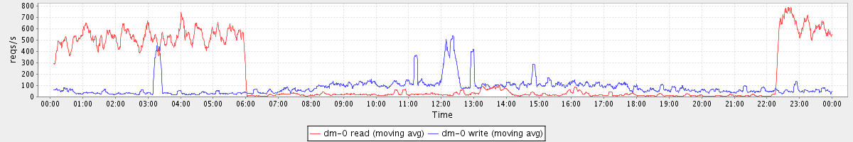 avg(dm-1 read) = 603.46 avg(dm-1 write) = 1076.17