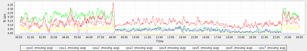 avg(cpu0) = 0.13 avg(cpu1) = 0.02 avg(cpu2) = 0.11 avg(cpu3) = 0.02 avg(cpu4) = 0.00 avg(cpu5) = 0.00 avg(cpu6) = 0.06 avg(cpu7) = 0.00