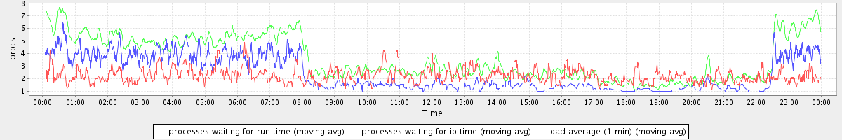 avg(processes waiting for run time) = 1.53 avg(processes waiting for io time) = 1.85 avg(load average (1 min)) = 3.59
