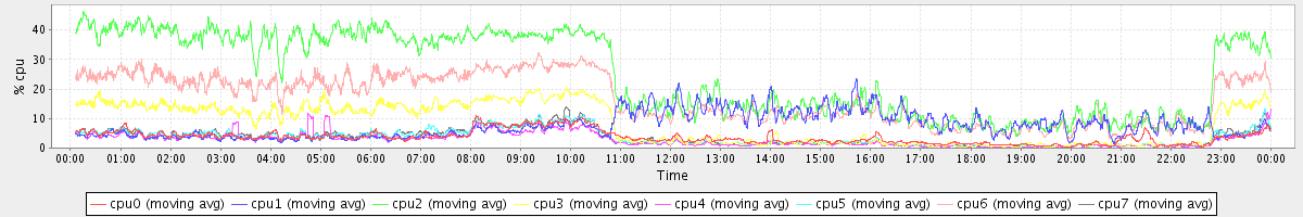 avg(cpu0) = 3.65 avg(cpu1) = 7.56 avg(cpu2) = 24.91 avg(cpu3) = 8.09 avg(cpu4) = 2.78 avg(cpu5) = 3.49 avg(cpu6) = 16.78 avg(cpu7) = 3.52