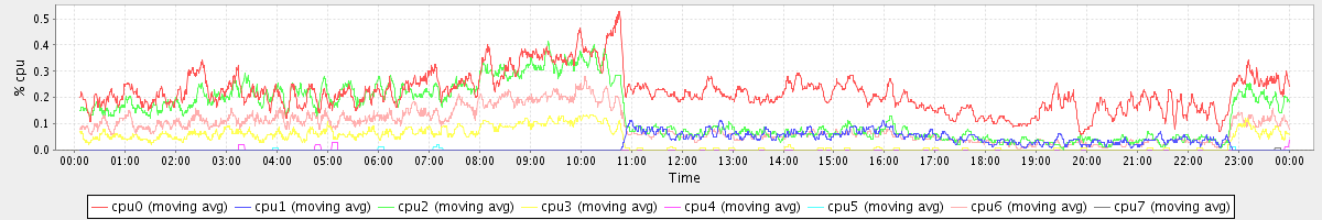 avg(cpu0) = 0.22 avg(cpu1) = 0.02 avg(cpu2) = 0.14 avg(cpu3) = 0.04 avg(cpu4) = 0.00 avg(cpu5) = 0.00 avg(cpu6) = 0.09 avg(cpu7) = 0.00
