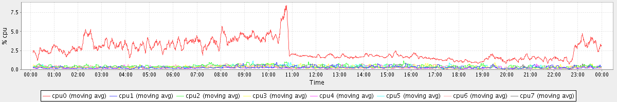 avg(cpu0) = 2.53 avg(cpu1) = 0.30 avg(cpu2) = 0.44 avg(cpu3) = 0.32 avg(cpu4) = 0.22 avg(cpu5) = 0.28 avg(cpu6) = 0.34 avg(cpu7) = 0.26