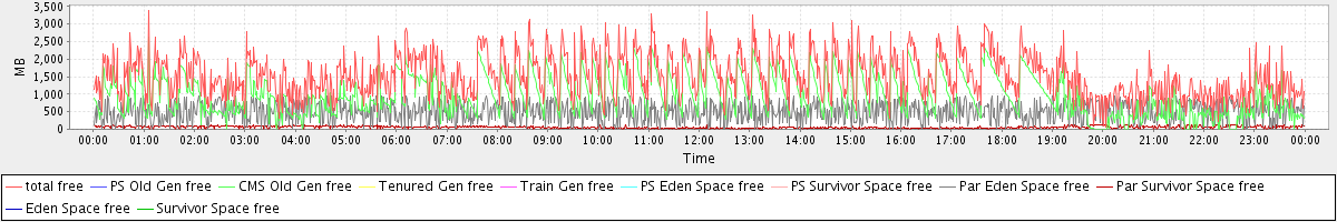 avg(total free) = 1537.32 avg(PS Old Gen free) = 0.00 avg(CMS Old Gen free) = 978.70 avg(Tenured Gen free) = 0.00 avg(Train Gen free) = 0.00 avg(PS Eden Space free) = 0.00 avg(PS Survivor Space free) = 0.00 avg(Par Eden Space free) = 504.49 avg(Par Survivor Space free) = 54.13 avg(Eden Space free) = 0.00 avg(Survivor Space free) = 0.00