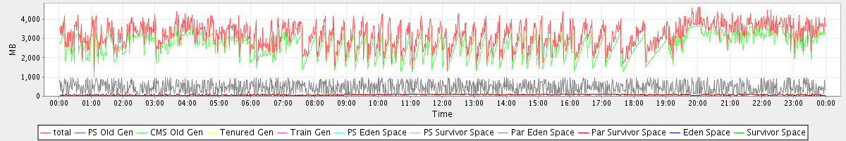 avg(total) = 3168.12 avg(PS Old Gen) = 0.00 avg(CMS Old Gen) = 2641.30 avg(Tenured Gen) = 0.00 avg(Train Gen) = 0.00 avg(PS Eden Space) = 0.00 avg(PS Survivor Space) = 0.00 avg(Par Eden Space) = 460.39 avg(Par Survivor Space) = 66.43 avg(Eden Space) = 0.00 avg(Survivor Space) = 0.00