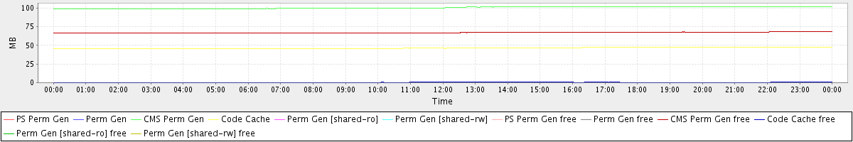 avg(PS Perm Gen) = 0.00 avg(Perm Gen) = 0.00 avg(CMS Perm Gen) = 100.45 avg(Code Cache) = 46.31 avg(Perm Gen [shared-ro]) = 0.00 avg(Perm Gen [shared-rw]) = 0.00 avg(PS Perm Gen free) = 0.00 avg(Perm Gen free) = 0.00 avg(CMS Perm Gen free) = 67.06 avg(Code Cache free) = 0.43 avg(Perm Gen [shared-ro] free) = 0.00 avg(Perm Gen [shared-rw] free) = 0.00