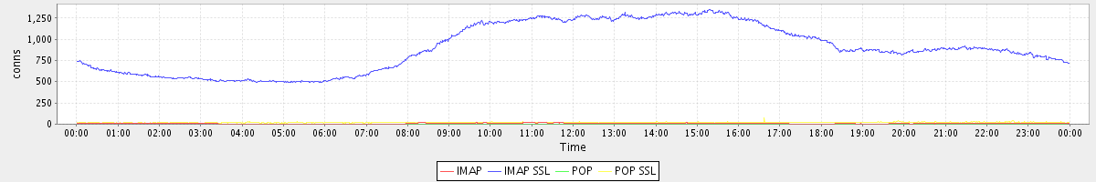 avg(IMAP) = 7.67 avg(IMAP SSL) = 896.08 avg(POP) = 0.05 avg(POP SSL) = 19.81