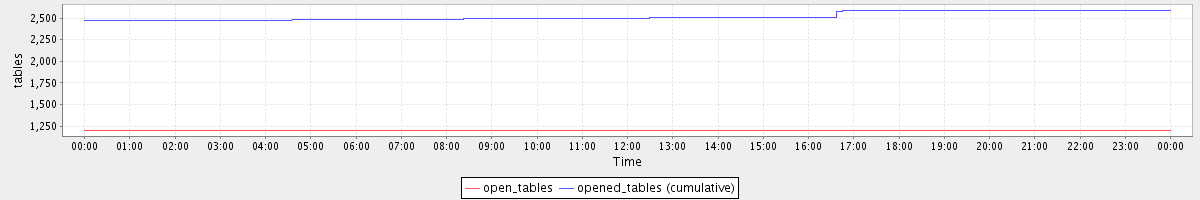 avg(open_tables) = 1199.99 avg(opened_tables (cumulative)) = 2520.90
